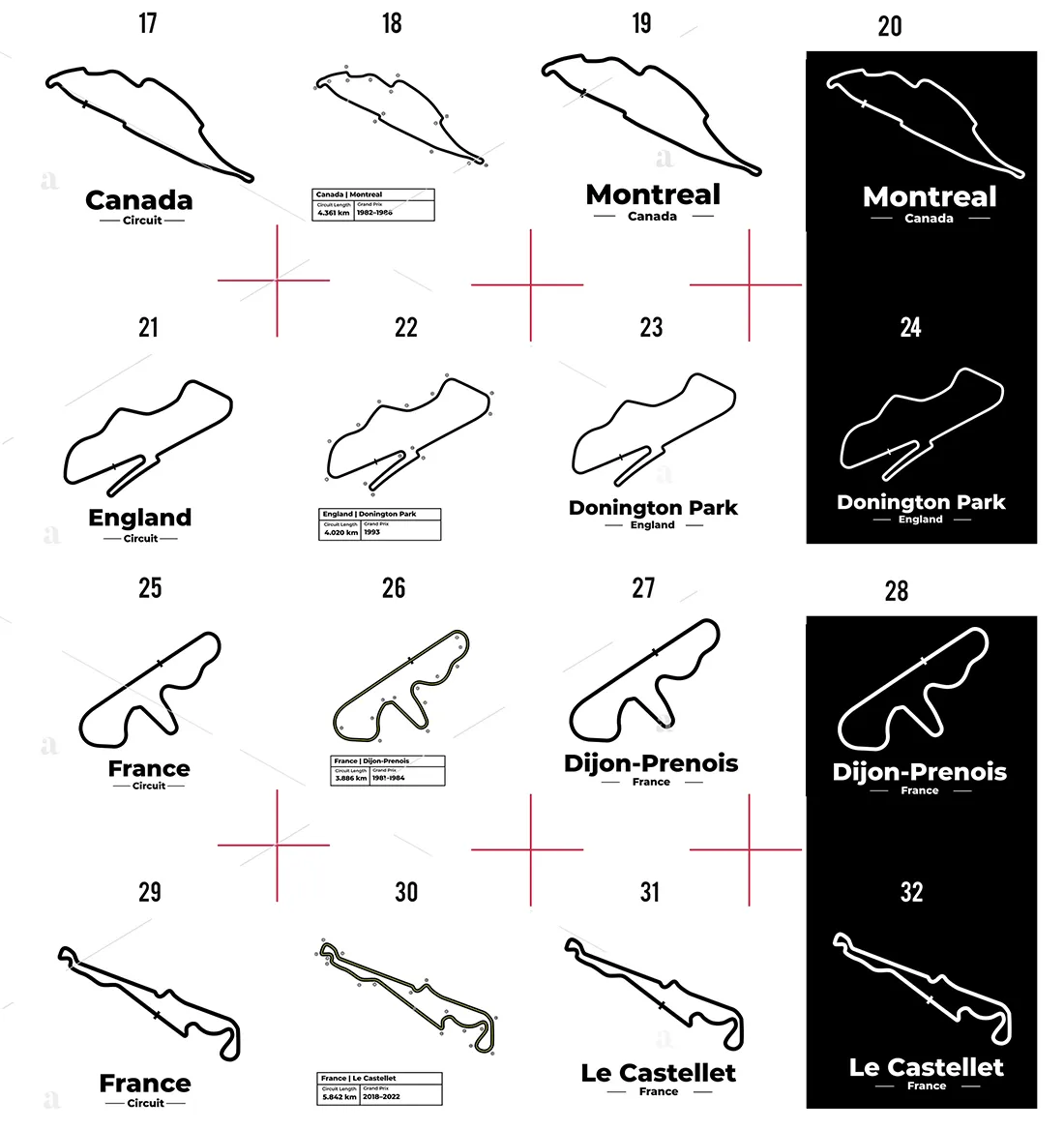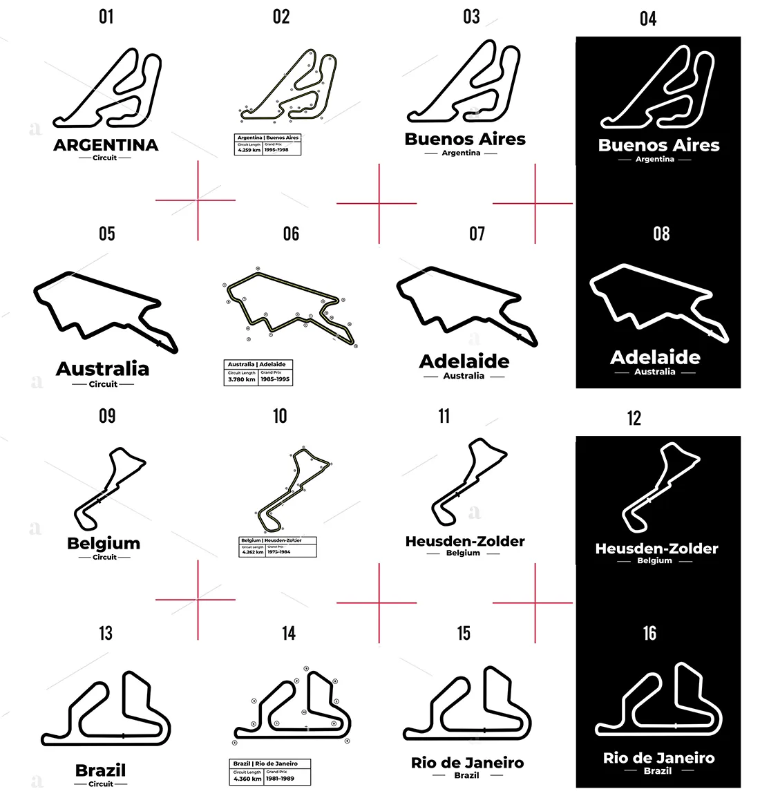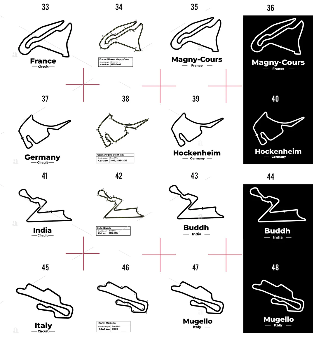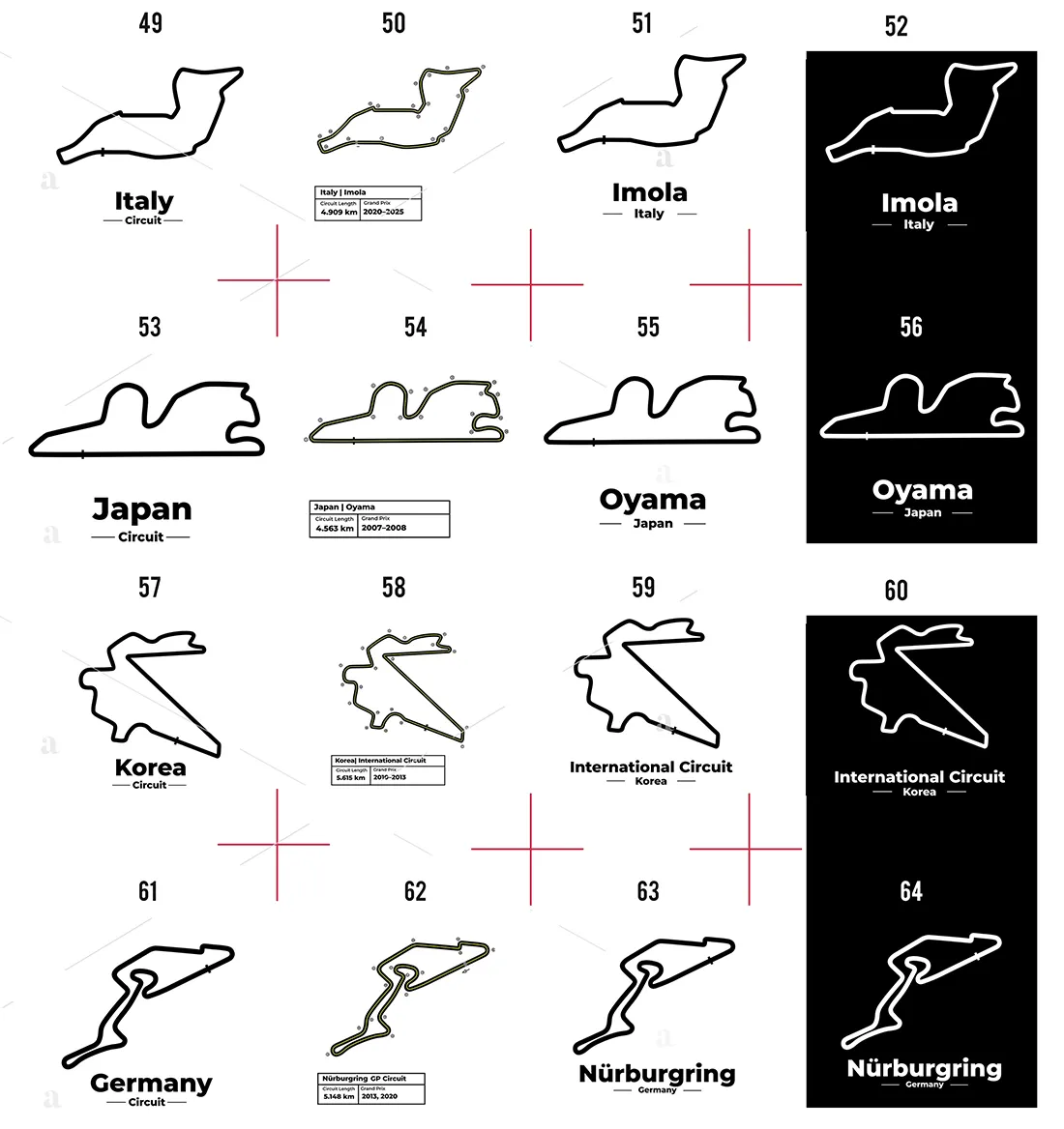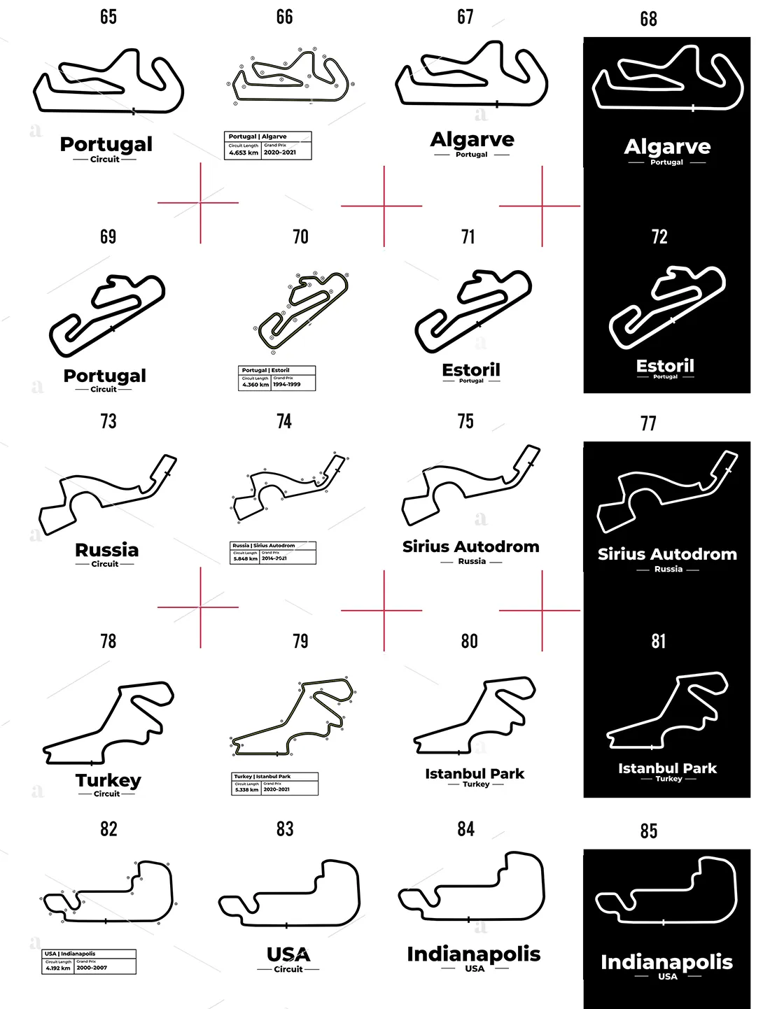 F1 Tory SVG zestaw – 80 wektorowych torów formuły 1