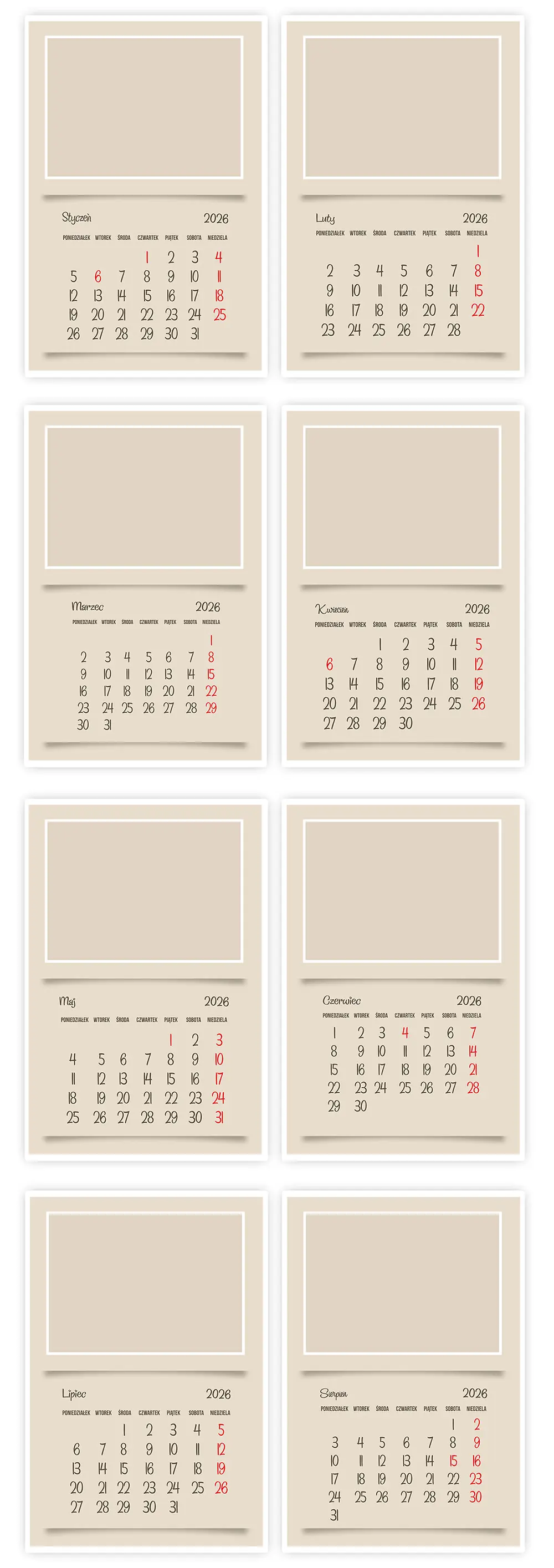 - Oszczędność Czasu: Koniec z projektowaniem od zera! Nasze gotowe szablony kalendarza 2026 oszczędzają godziny pracy, dając Ci bazę, którą wystarczy wypełnić swoimi zdjęciami.