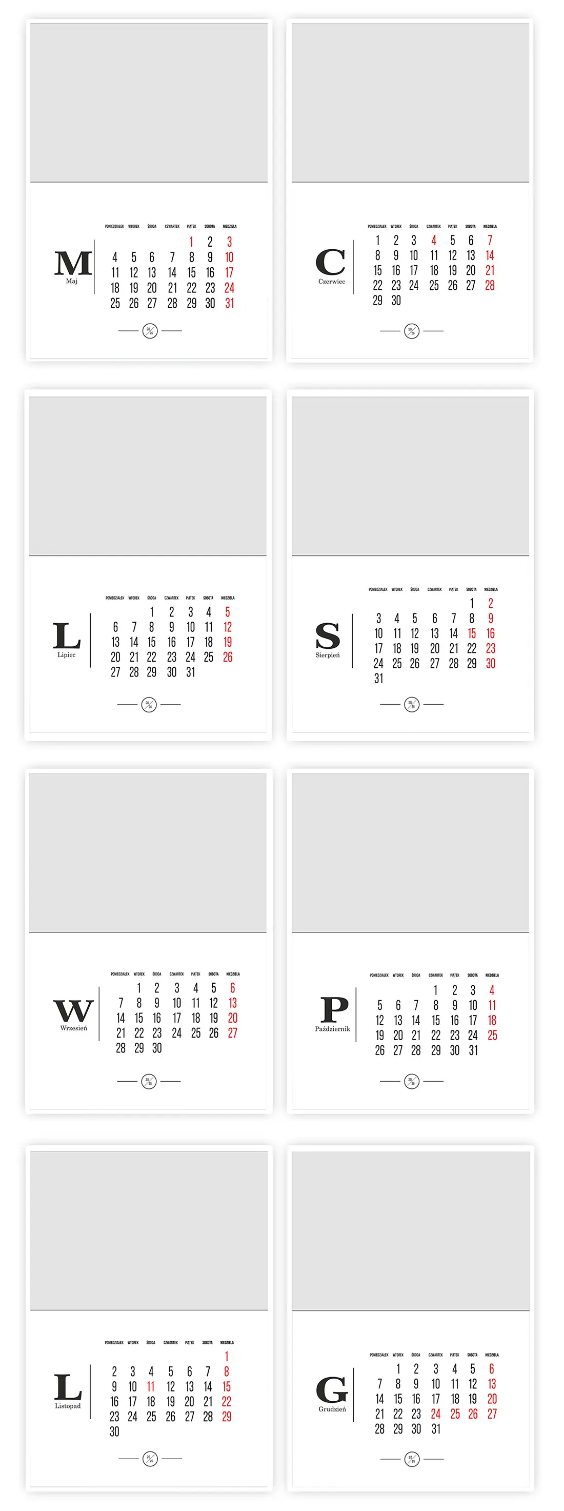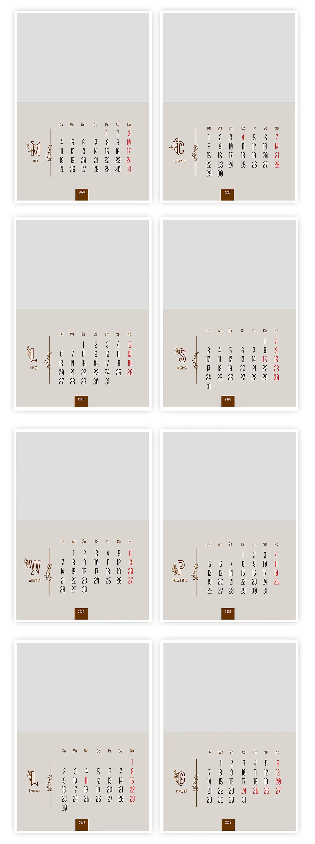 Sekretem tych szablonów jest ich wielowarstwowa struktura. Format PSD (Adobe Photoshop Document) gwarantuje, że każdy element – od numeracji dni przez tło po miejsca na fotografie – znajduje się na osobnej warstwie. Maksymalna Elastyczność: Z łatwością zmienisz kolory firmowe czy rozmieszczenie elementów graficznych.