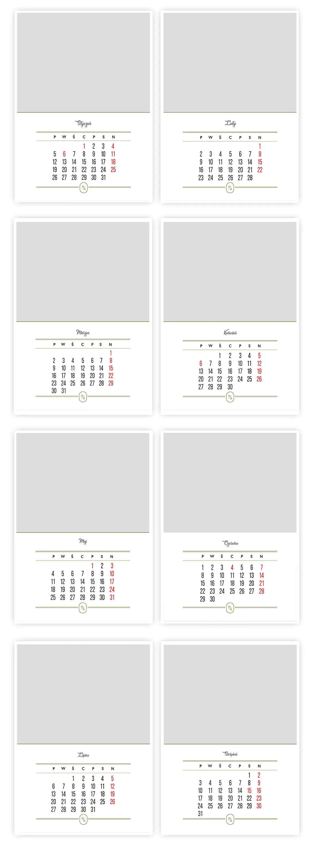 Szablony PSD A3 do kalendarzy 2026 – z miejscem na zdjęcia