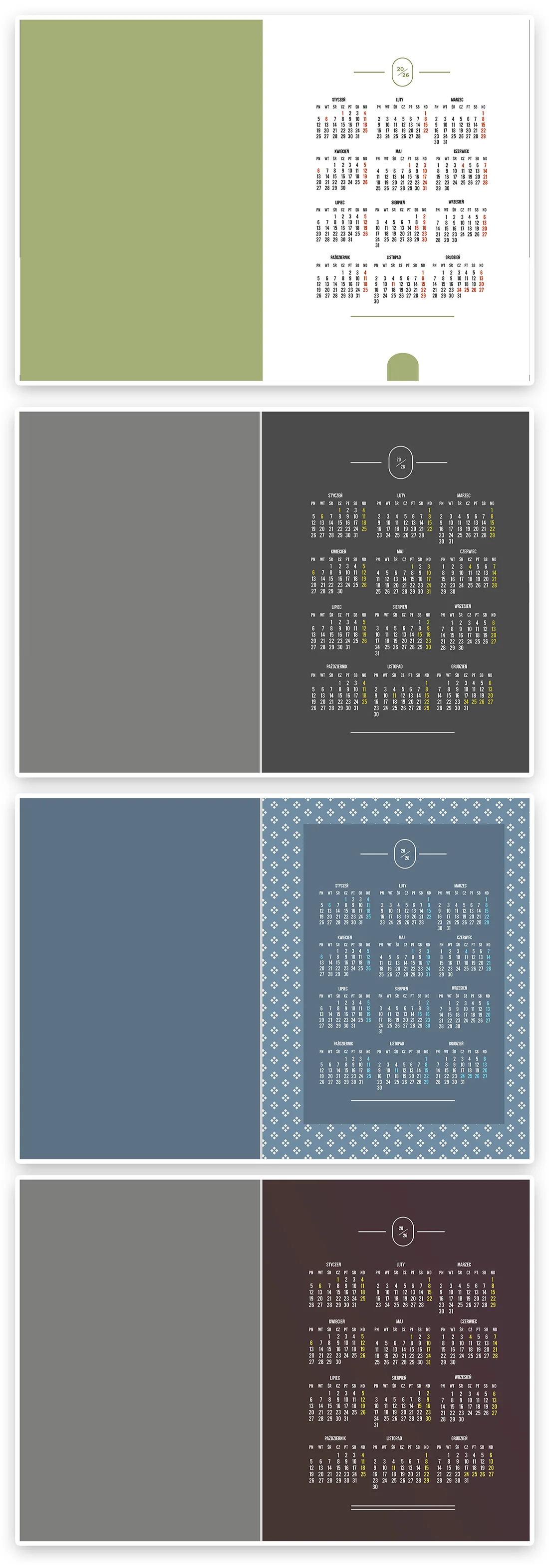 Wzory Kalendarza 2026 Jednostronne kalendarium z4