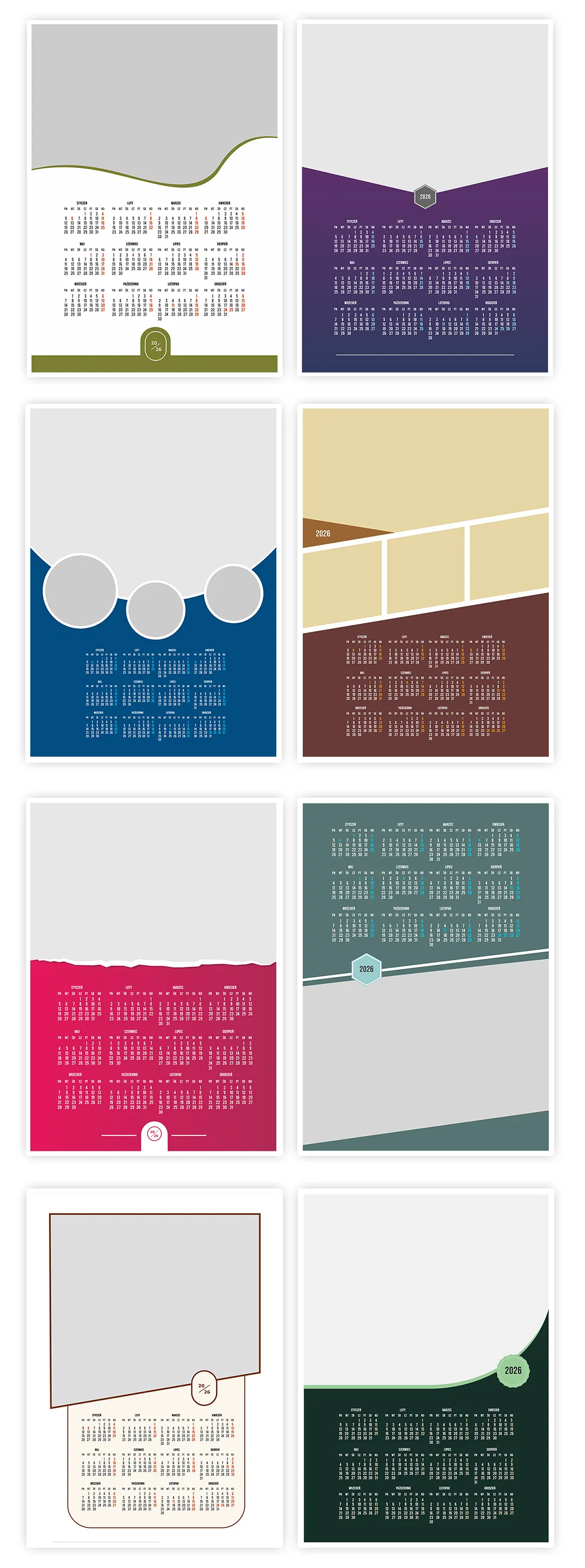 Wzory Kalendarza 2026 Jednostronne szablony ze zdjęciem to idealny nośnik reklamy. Jeśli prowadzisz małą firmę, wykorzystaj ten format: